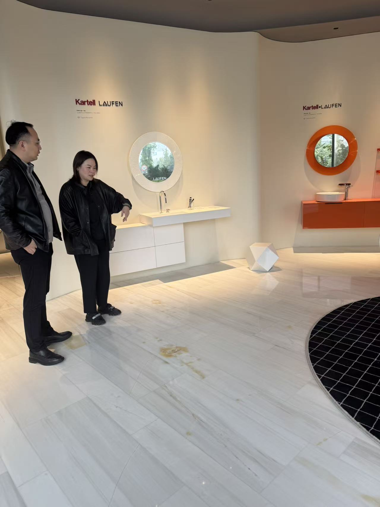 在零售总经理叶悠茹的引导下,杜佳峰秘书长实地参观了位于红星美凯龙 1 楼主入口核心位置的天益幸福家展厅。展厅内,瑞士劳芬的潮流卫浴、德国当代的经典龙头、意大利 Antoniolupi 的艺术台盆等国际一线品牌产品错落陈列,涵盖卫浴、橱柜、电器、收纳四大核心品类。叶悠茹总经理重点介绍了杜唯淋浴房的静音防尘工艺、比利时阿尔法桑拿房的定制服务,以及天工之作浴室柜的材质创新,这些产品凭借 “美学吸引力 + 功能实用性” 的双重优势,成为宁波高端家居市场的标杆选择。