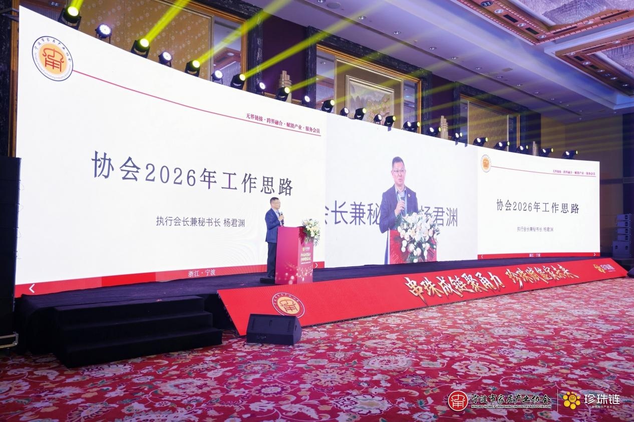2026年1月16日下午2:00,宁波市家居产业协会在宁波香格里拉大酒店隆重举行了主题为“串珠成链聚甬力,珍珠赋能家未来”七届四次会员大会暨2025年会。本次大会汇聚了来自家居产业各界的会员代表和领导、嘉宾、合作伙伴共400多人,共同回顾了过去一年宁波家居产业在转型升级、创新驱动和品牌建设方面取得的显著成果,并展望新的一年家居产业的发展方向。