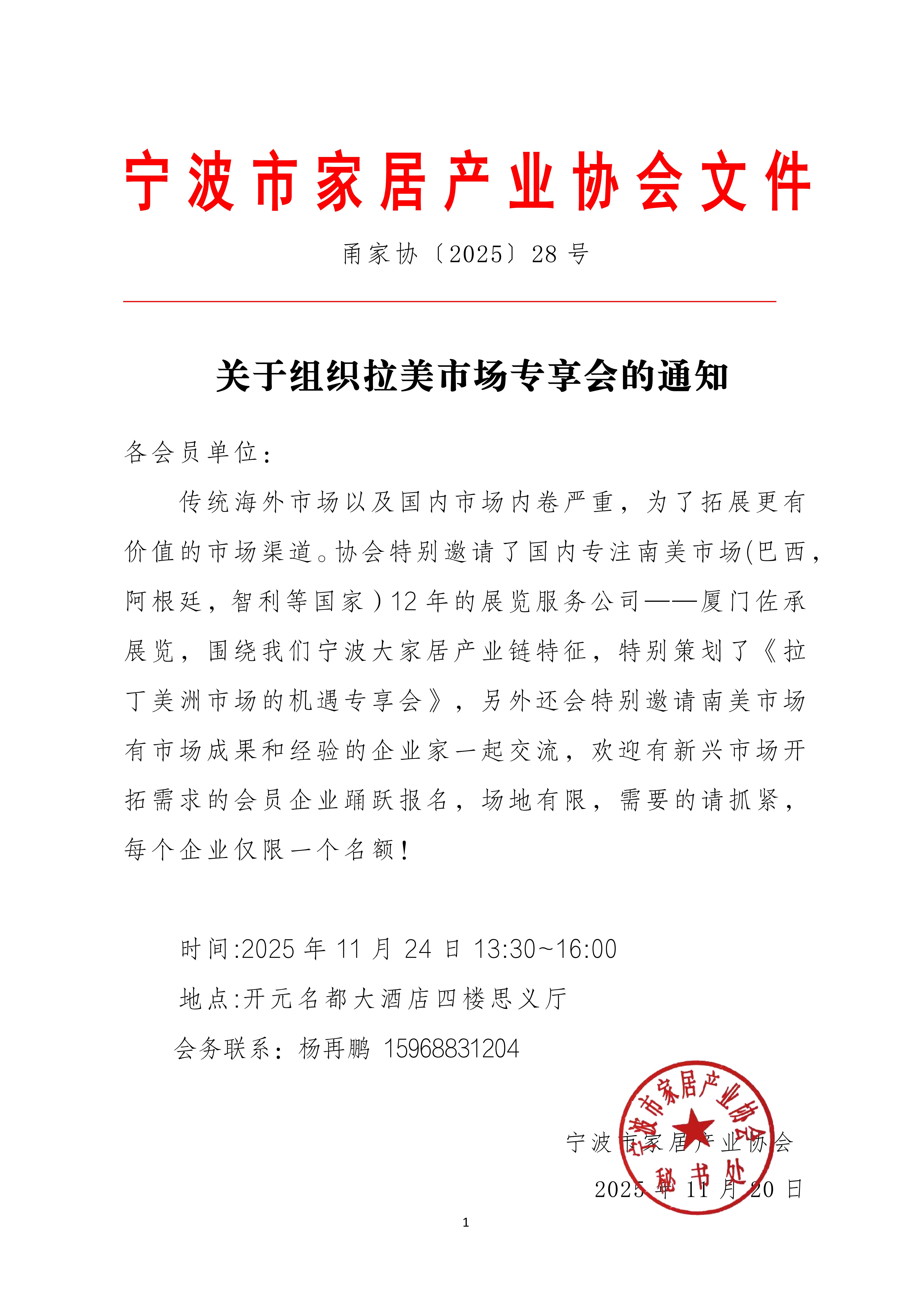 > > 甬家协〔2025〕28号关于组织拉美市场专享会的通知